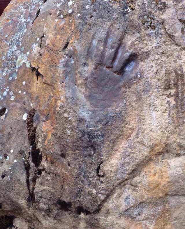 Il corpo di Karma Sonam Rinpoche dopo sette giorni di meditazioneImpronta della mano di Rinpoche nella roccia.